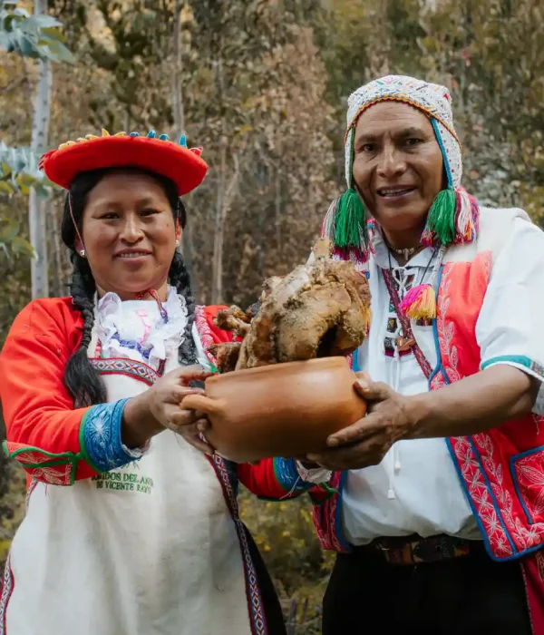 The Pachamanca is a profound ancestral ritual that honors the bond between the community and Pachamama (Mother Earth). In this experience, you will participate in the preparation of a traditional underground oven using heated stones. Native potatoes, corn, Andean herbs, and selected meats are buried to cook slowly, absorbing the essence of the earth.